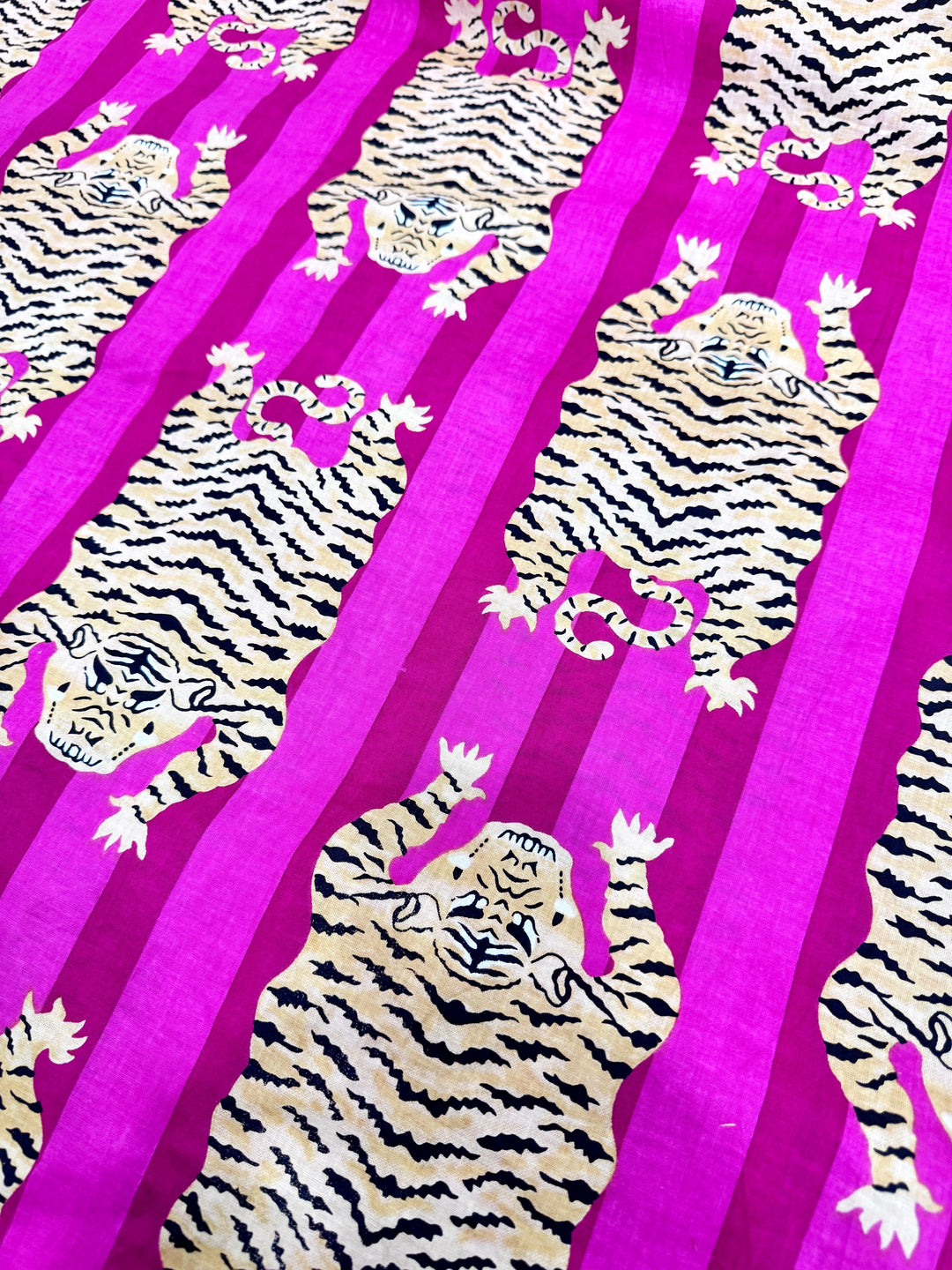Pink and Red Stripe Tiger Fabric Hand Printed Cotton by the yard